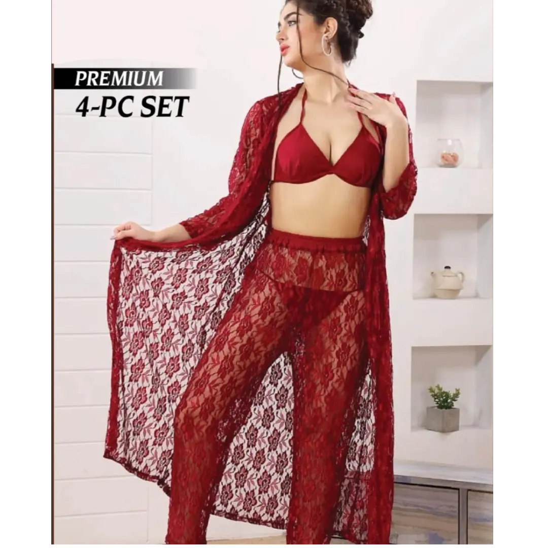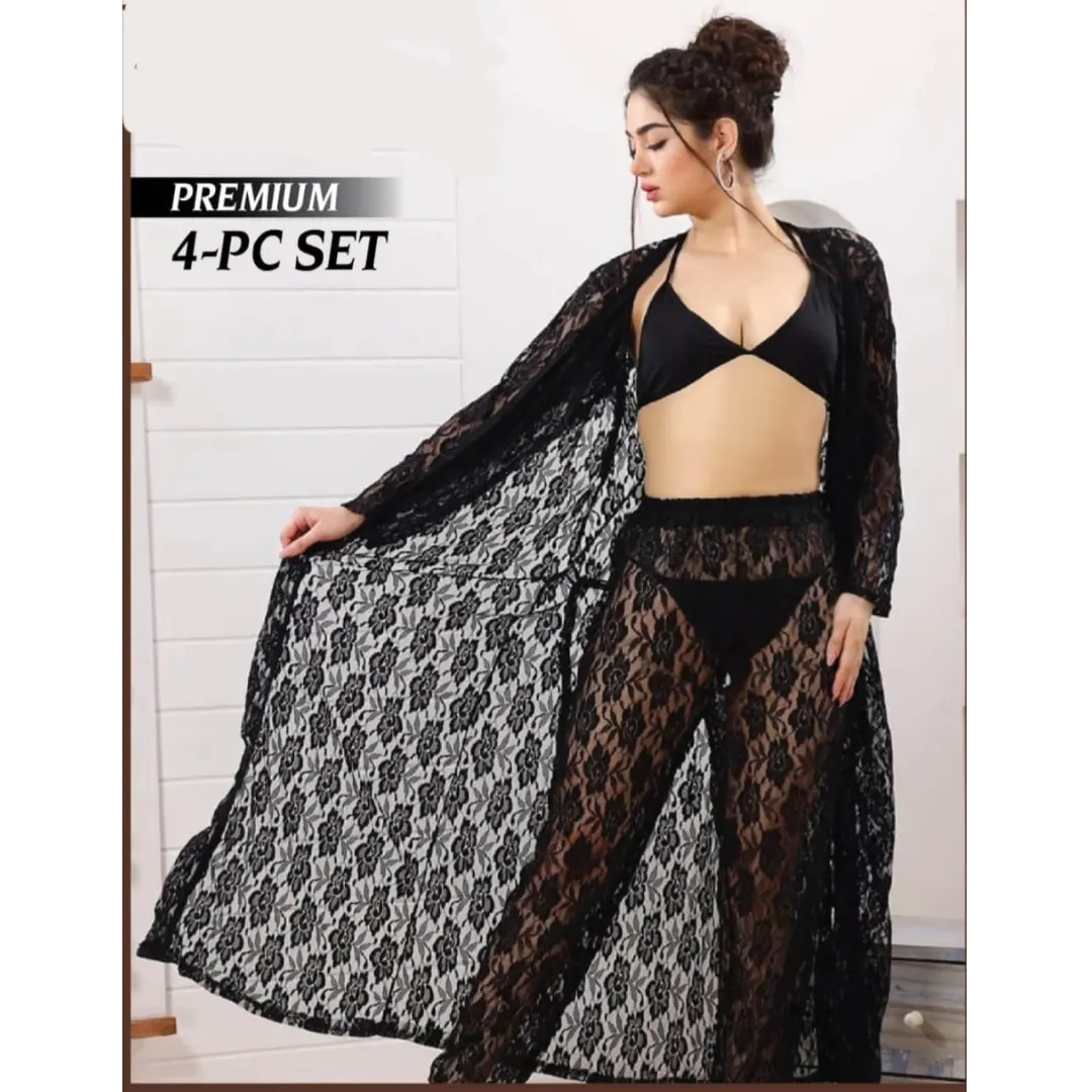 Experience ultimate comfort and elegance with our exquisite 4-piece nighty set. This comprehensive collection features beautifully coordinated pieces designed for versatility and style. Each garment is crafted with premium fabrics that ensure breathability and a luxurious feel against your skin. Perfect for everyday wear or special occasions, this set offers multiple styling options to suit your preferences. The thoughtful design combines practicality with sophistication, making it an essential addition to your intimate apparel collection. Enjoy the confidence that comes with quality craftsmanship and timeless appeal.